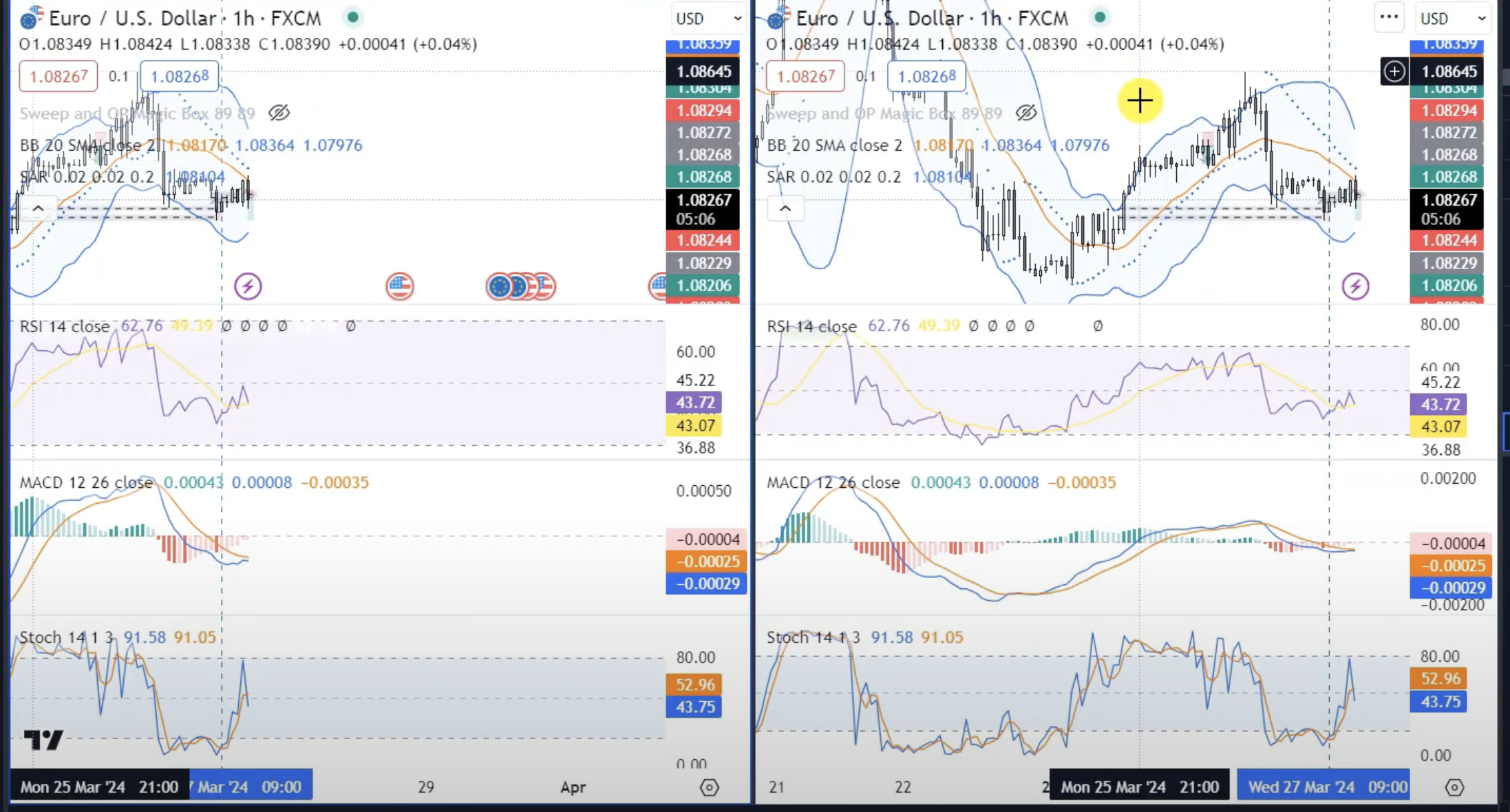• Lợi ích: Hỗ trợ theo dõi nhiều tín hiệu và phân tích sâu hơn với nhiều công cụ như RSI, MACD, Bollinger Bands, hoặc các chỉ báo tuỳ chỉnh khác.